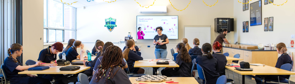 The session, led by Dr Brown, was both engaging and empowering, offering students a unique opportunity to hear firsthand about her journey from Woodville High School student to successful entrepreneur and educator. Through her work with Sparkle Ideas Lab, Dr Brown has become a passionate advocate for youth voice, creativity, and purpose-driven learning. Her return to Our Woodville was particularly meaningful, as she reflected on how her time at school helped shape her aspirations, values, and career pathway.